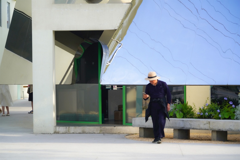 Regarding material choices, in addition to continuing the rough aesthetic of the original site, we introduced sharp materials like glass and metal. We had discussions with the tenants about the dormitory’s façade design. After finishing the external frame, the contrast between the old and new was already established, but we added a layer of glass to create a blurred boundary between the old and new, through reflections and projections. It weakens the building’s personality, but enhances the display of tenants’ individual identities. Both the water pool and the mirrored billboard in the Rain Plaza reflect fragments of the sky and people, pulling them into the scene and using these changing elements to stir up the mixture of the new and old. It has also been proven that this enhances the inclusiveness of the building, fostering better coexistence among diverse residents.
