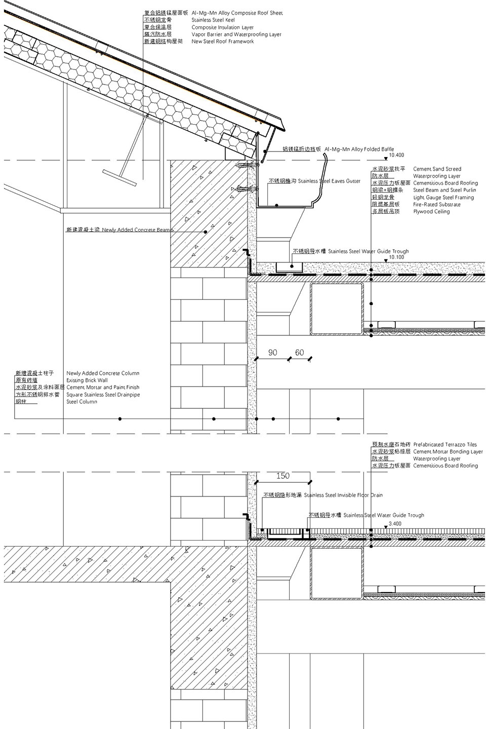 ▼F楼墙身大样,A detailed outline of the wall of Building F