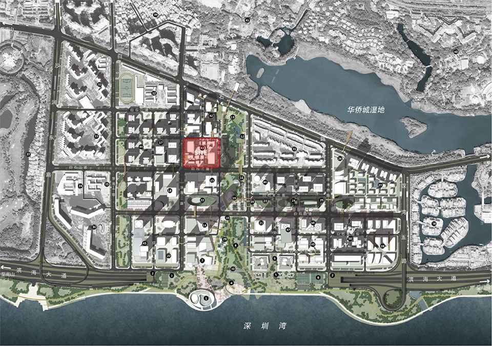▼项目在深圳湾超级总部基地的位置,the Project’s Location within the Shenzhen Bay Super Headquarters Base