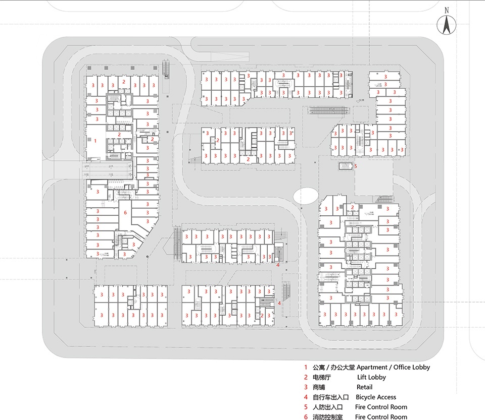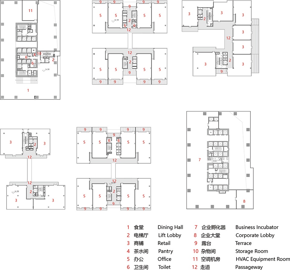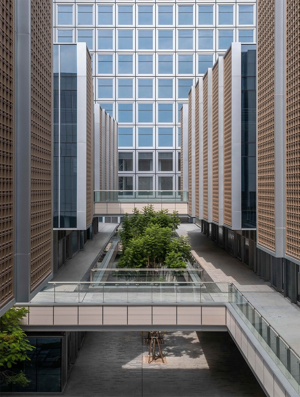 垂直系统则如有机生长的藤蔓,以连廊、露台与空中院落构建出一组立体聚落,在理性秩序基调上奏出一曲轻盈跃动的自然乐章。这一切并非对城市结构的简单复现,而是在理解其内在逻辑后,以建筑语言实现纪律与灵动之间的平衡——既锚固于城市秩序,又自由地向上生长。