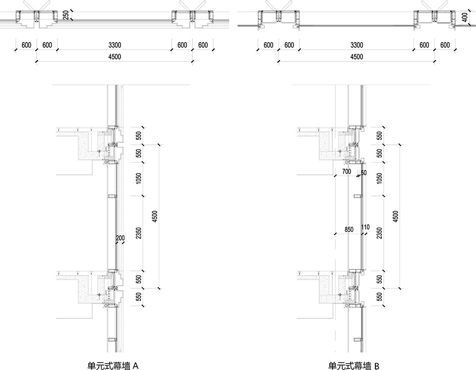 ▼单元式墙身节点,Unitized Curtain Wall Junction Detail