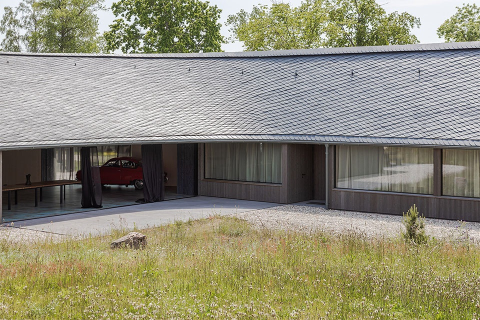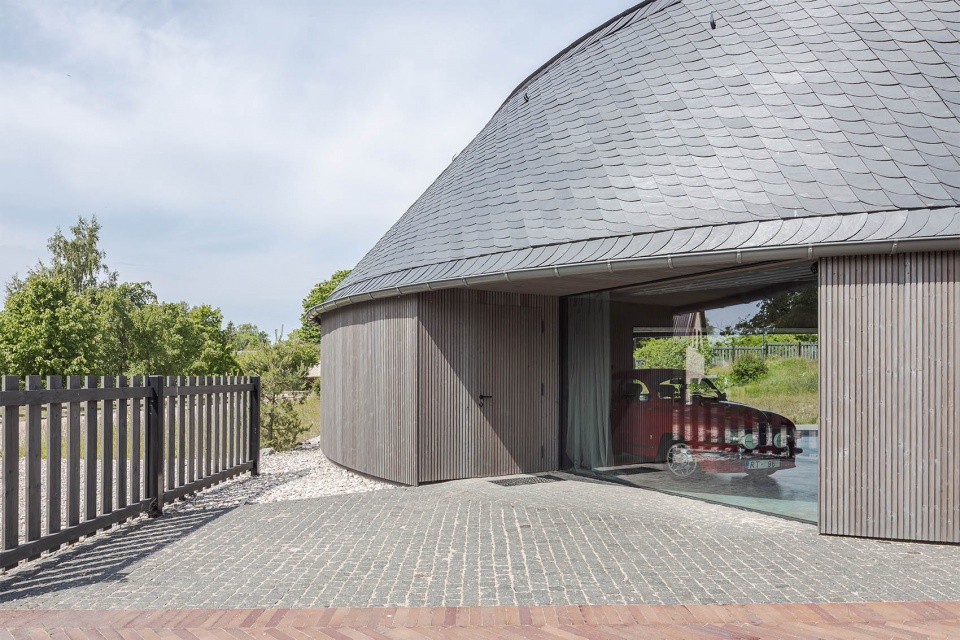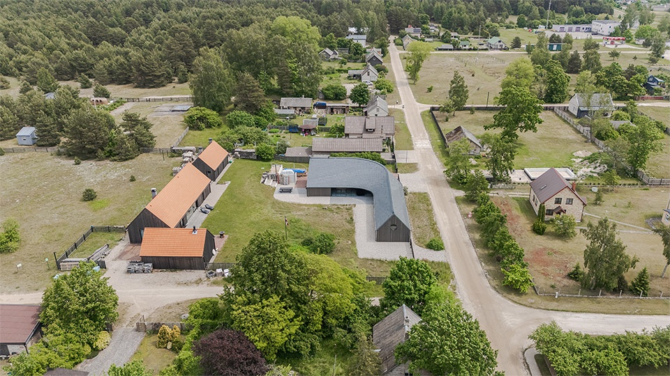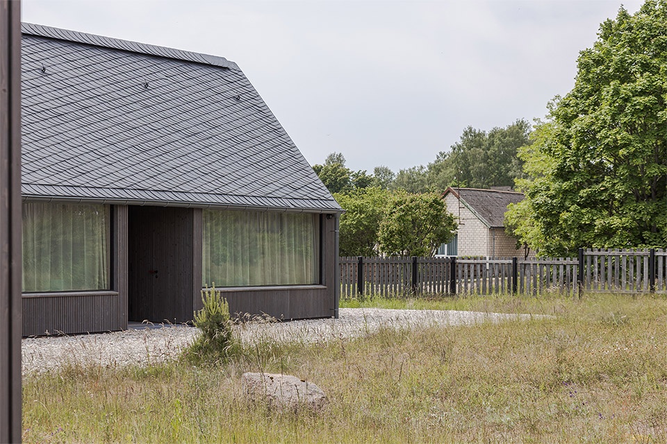 The Pāvilosta house (Latvia) is designed as a spacious gathering space with a large living room and guest rooms, serving as an extension to the client’s main residence located next door.