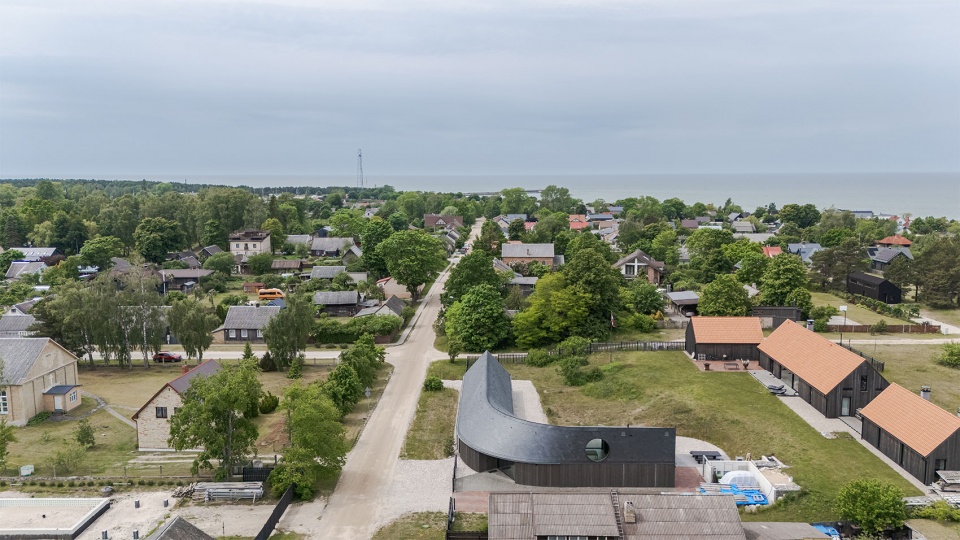 The architectural concept of the Pāvilosta house is located in the in—between space. On the one hand, the traditional gabled character of Pāvilosta architecture, on the other hand, the power of the wild sea and the freedom of the wind. It is not for nothing that Pāvilosta is a place where people settle, who form close relationships with the wind, sea, waves and become part of the unbridled power of nature. The house is like a part of the endless seaside landscape. Along the street, it respects the traditional building profile, then with a light twist turns into a dynamic vector.