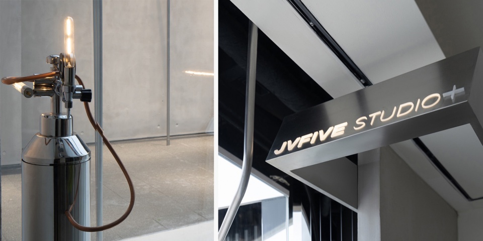 ▼氧气瓶灯光装置和与空间语言呼应的品牌招牌