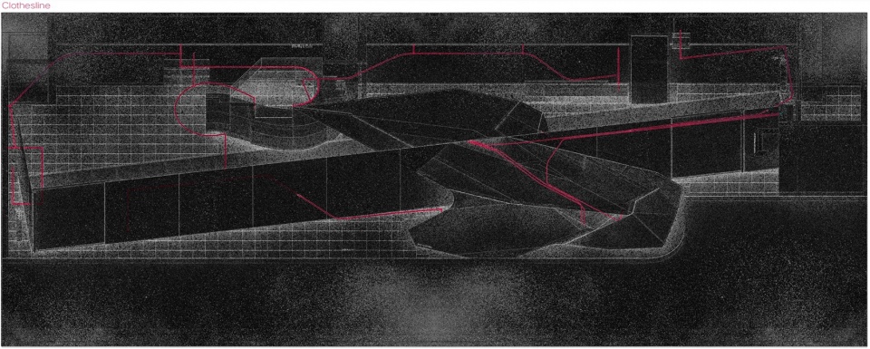 ▼贯穿空间的三维曲线晾衣杆,Three-dimensional curved clothesline that spans the entire space