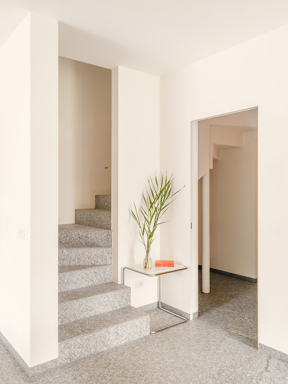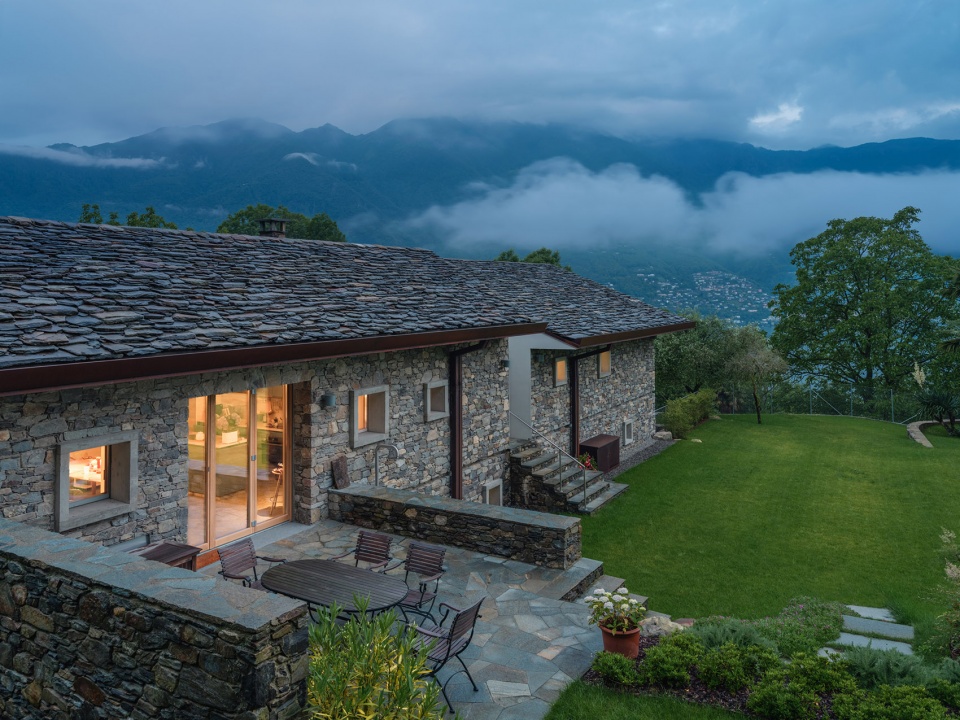 Le stalle, a stable—or rather, the ruins of a stable—sat in a rural area near Lago Maggiore, Italy, that can only be reached via an ancient Roman cobblestone road. The clients approached Pedro&Juana looking to transform the remains of Le Stalle into two vacation homes. Although the original structure could not be repaired because of its exposure, preservation laws in Italy required the new construction to respect the original footprint while allowing for an expansion of up to 20%. With these limitations in mind, and in an effort to honor its history, Pedro&Juana preserved the stable’s robust rectangular shape (albeit 20% bigger) and sturdy stone walls while splitting the structure in two to create a visual break between the houses. The gabled slate roofs of each volume tilt in different directions, as if the back house was peaking for a glimpse of the glittering lake five hundred meters below.