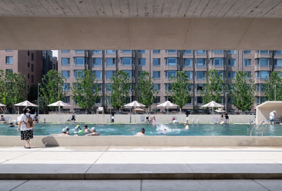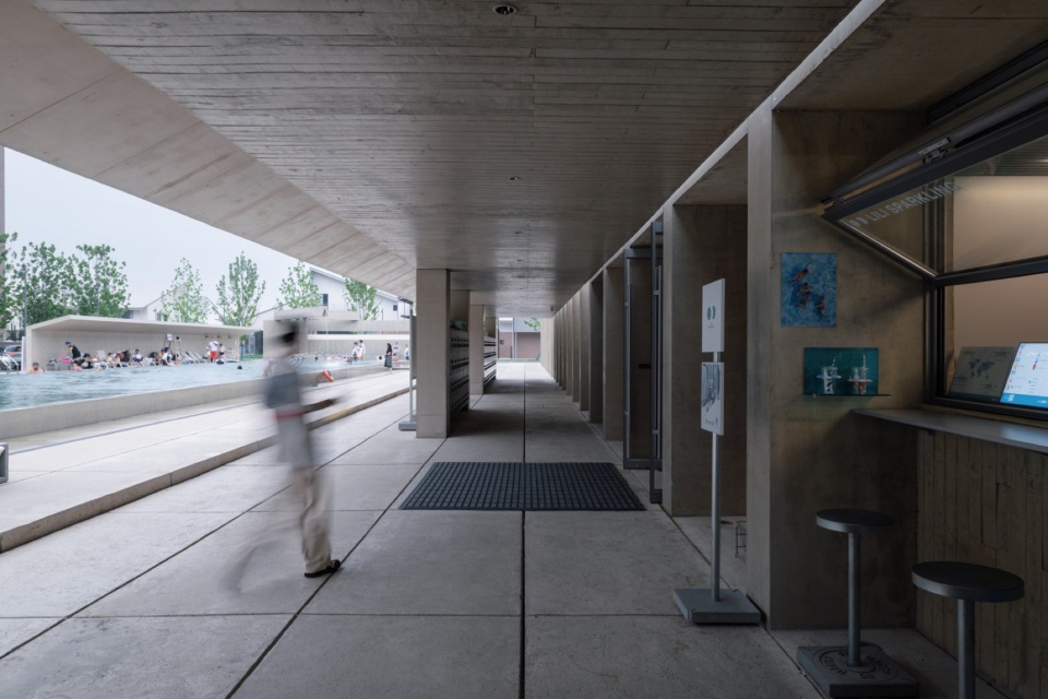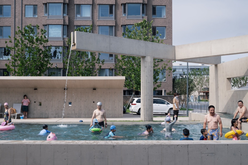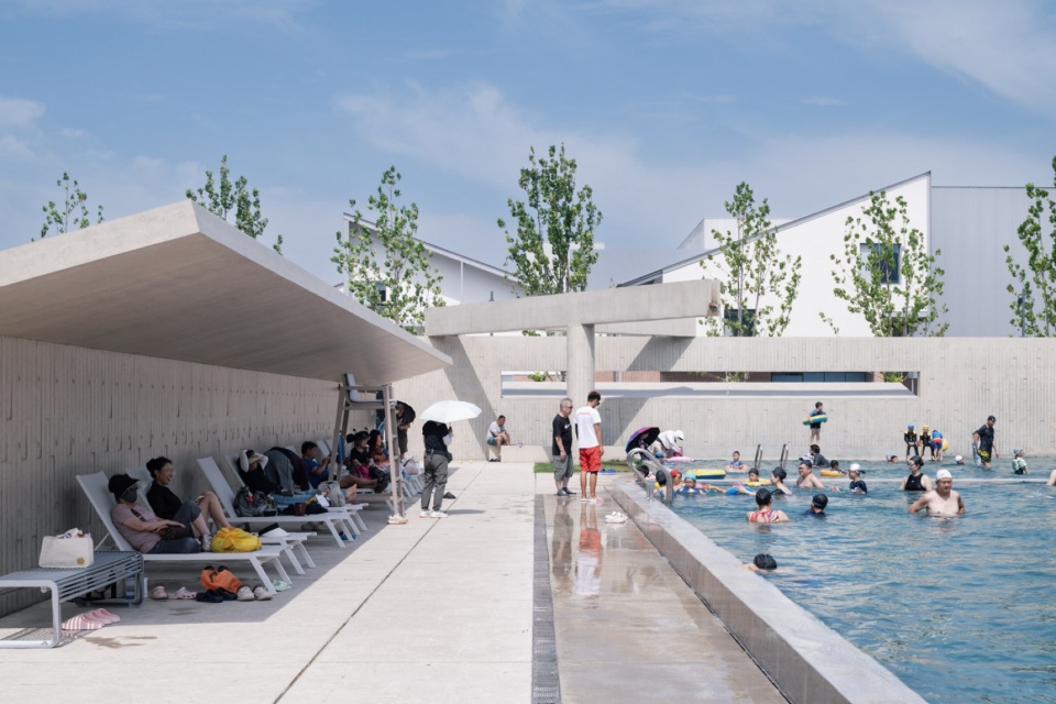 自落成以来,体育馆前的室外游泳池更是成为备受全年龄段住户欢迎的活动场所,无论晴雨,始终洋溢着生机与活力。而内部空间在满足社区居民日常健身的需求外,也成为事件性大型公共活动发生的所在地。这使得体育中心既谦逊地融入北岸公共建筑群的整体氛围,又真诚地融入住区的日常生活图景——成为一种“巨大沉默而又平易近人”的存在。