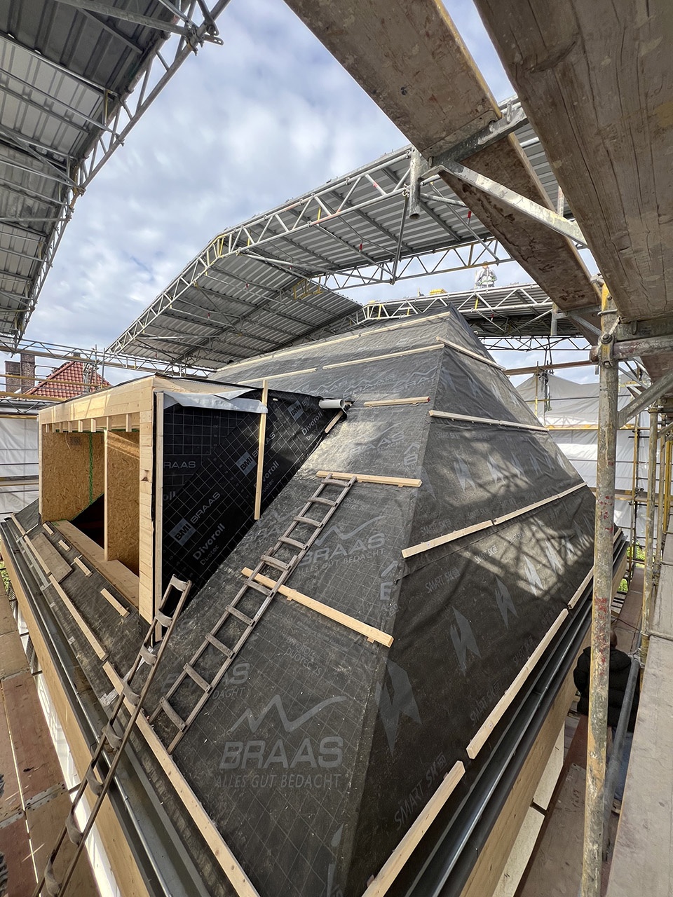 ▼施工过程中的屋顶,the roof under construction