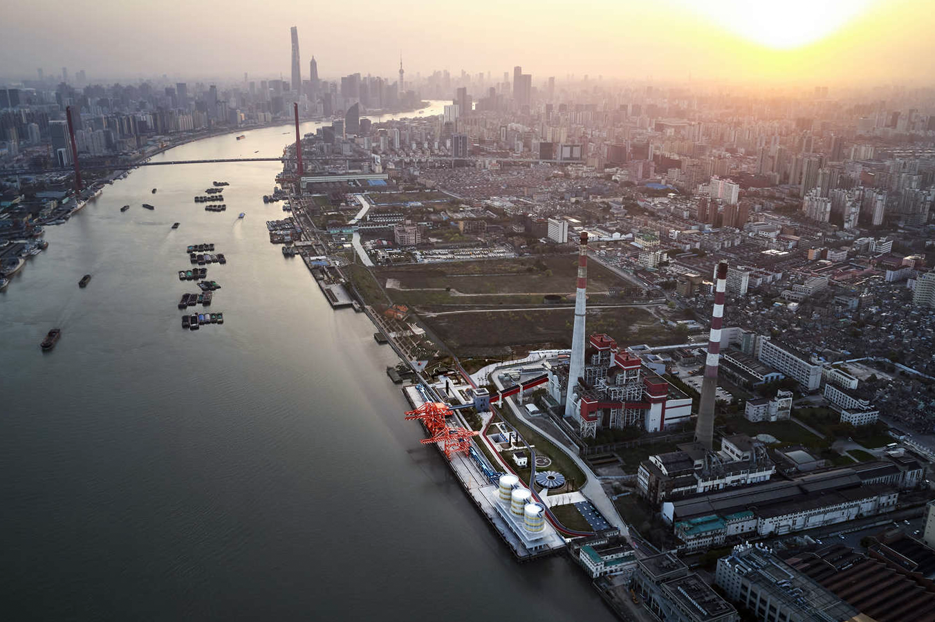 1、上世纪初远东最大火力发电厂的涅槃重生:杨树浦电厂滨水艺术空间前身为英商投资建于1913年的杨树浦发电厂。这座曾经的远东第一火力发电厂虽然在上海的城市发展中扮演了重要的角色。2015年,伴随着整个黄浦江公共空间工程计划的启动,电厂关停开始实施生态和艺术改造,从封闭的“闲人免入”生产岸线,向文化和生态共享的生活性滨水开放空间转型,“还江于民”,修复燃煤造成的生态污染,塑造电厂的场所精神,嵌入城市律动的滨水公共空间。
