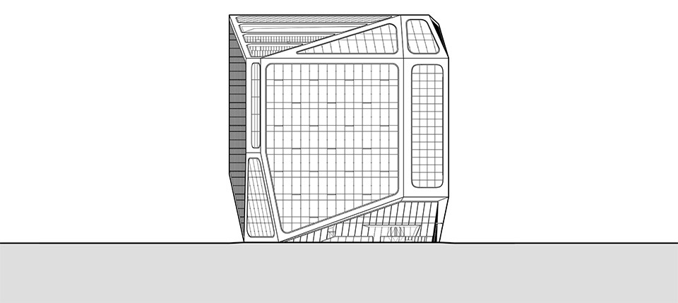 建筑限高45m,在无法通过高度“凸显”建筑存在感与特殊性时,设计在保证功能使用的前提下,结合空间布局,形成宛如钻石的多面体建筑形态。