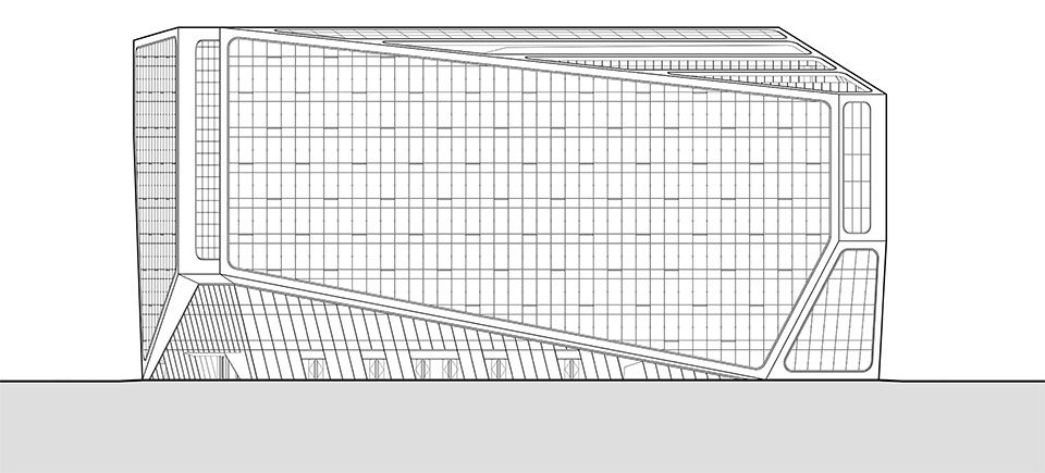 With a height limit of 45m, the design ensures functionality while creating a multifaceted, diamond-like form through spatial layout, as the building cannot rely on height to stand out.