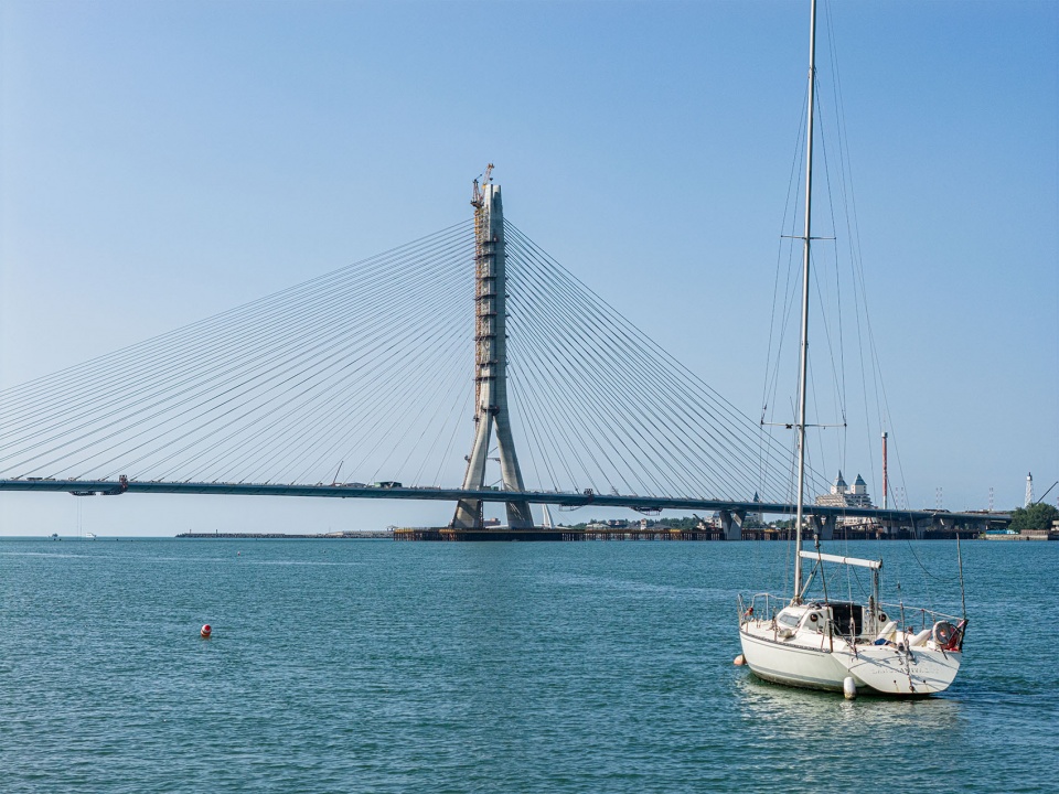 淡江大桥横跨贯穿台北的淡水河入海口,是全球最长的单塔不对称斜拉桥,也是台湾北部区域综合基础设施升级计划中的关键工程。预计于明年(2026年)五月通车的大桥,将通过连接淡水河东岸的台2线公路与西岸的台15线、西滨快速道路(61号)以及八里-新店快速道路(64号),有效缓解沿线道路的穿越交通压力。