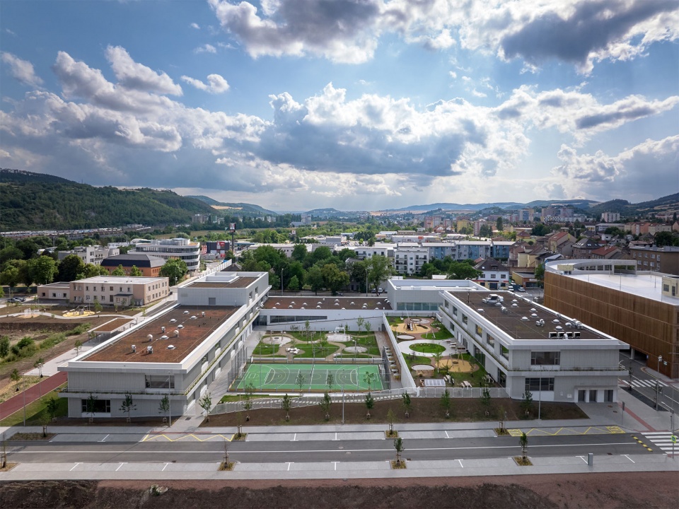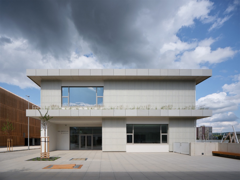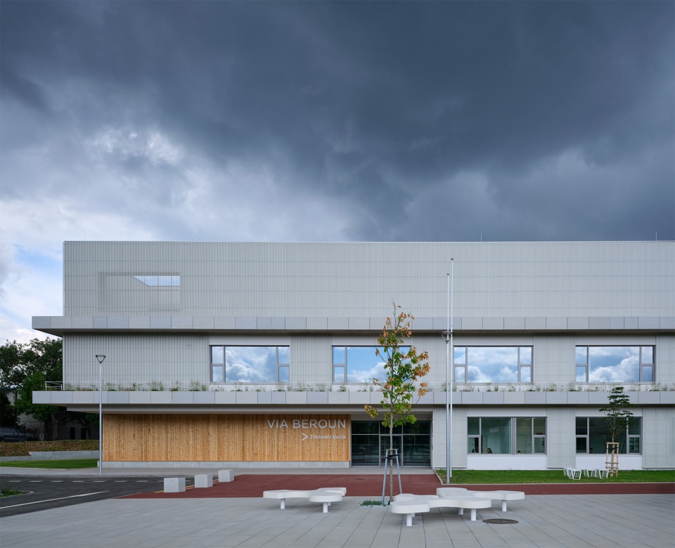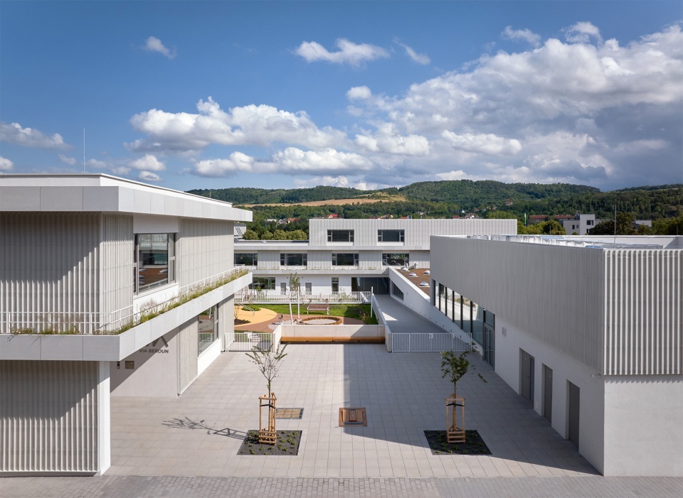 Located near the historic center of Beroun, the VIA school campus, comprising a kindergarten and elementary school, transforms a former industrial site into a vibrant space for learning, play, and community life. The project is a part of the first stage of revitalizing the former Tiba textile factory brownfield, supporting the transformation of this part of the town into a lively and welcoming urban space.
