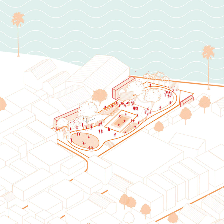 我们的目标是通过创造一个多通道的空间,促进社区成员之间的联系,团结所有人。原址荒废的性质、有限的出入口以及与周围环境的缺乏融合构成了重大挑战。我们的设计精心考虑了可达性,战略性地定义了出入口,与周围的住宅区无缝连接,从而促进互动。Suan San的设计设有多个入口,使空间与周围环境自然融合,减少视觉障碍。墙体被创新性地设计成座位,同时又巧妙地界定了边界,其邀请性的美学鼓励互动,为所有人营造了一个友好的氛围。