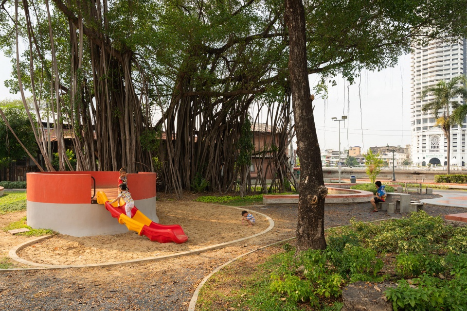 “Suan San”是一座位于历史悠久的、文化多元的Klong San-Tha Din Daeng社区中的口袋公园,占地3,894平方米,见证了这一变革性的愿景。这个区域沿着湄南河,具有200年的历史,人口稠密,亟需进行城市更新。Suan San是多方合作的典范,由一家私营企业慷慨捐赠土地,供公共使用,并由曼谷市政府主导其开发。通过与当地社区的深度参与式设计,这片曾经荒废的空间被重新构想为一个真正服务于用户的公共公园,并避免了成为过去被遗弃场地的命运。