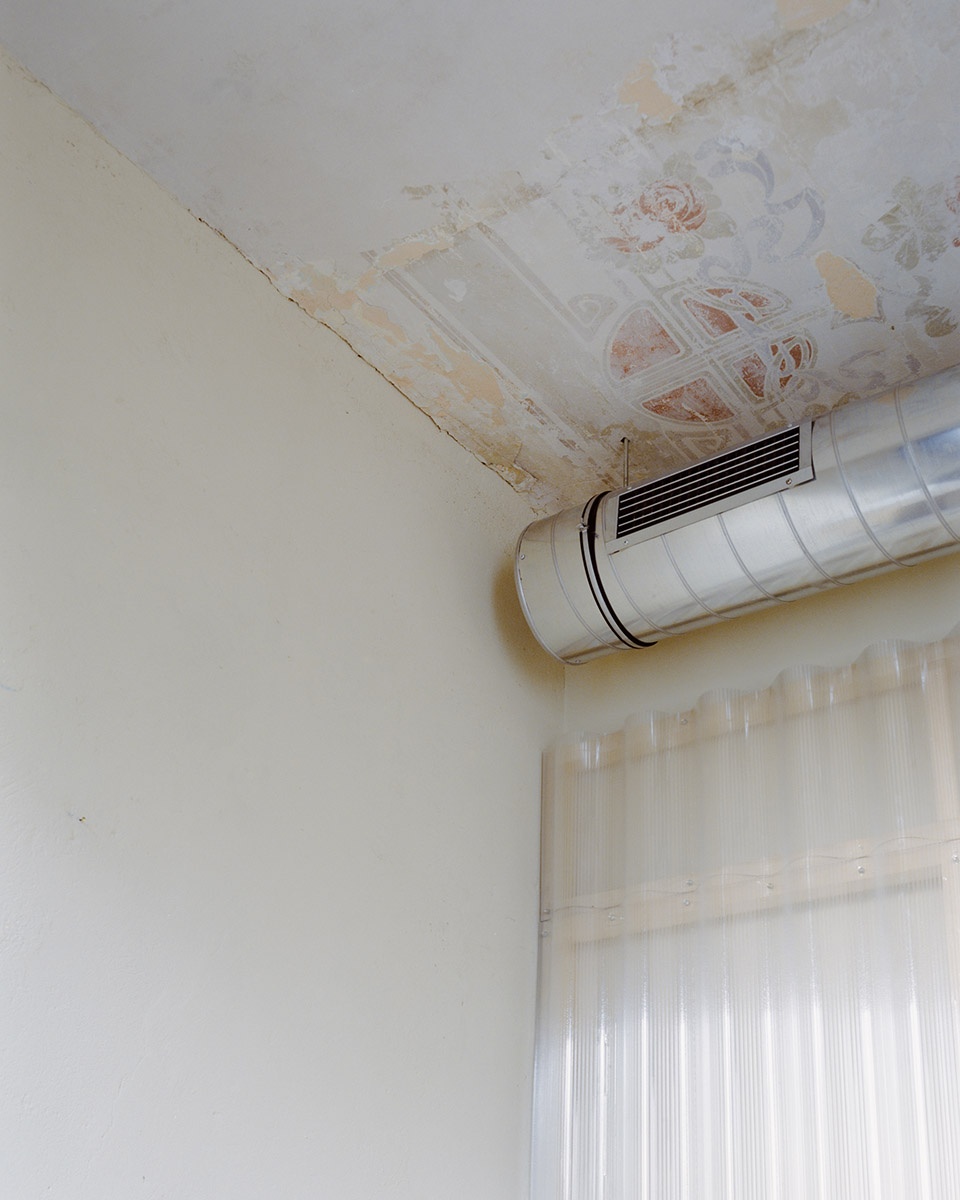 在这里,Genuit的外露钢制管道不再只是技术解决方案,而是一种为空间添加了新“表皮”的叙事性设计装置。金属的反射、折射与中断在不规则的表面间交织,突出了过去与当下之间的时间张力。