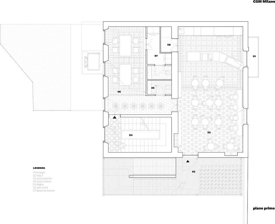 Club Giovanile Milano毗邻La Forgiatura,那是一个同样由RealStep推动的城市更新项目。然而,这里采用了刻意对比的语言。若说La Forgiatura是创新的当代园区,那么这座别墅则像一件拒绝被同化的1930年代遗迹,以“异类”的姿态安坐于新街区之中,强调自身的独立与差异。