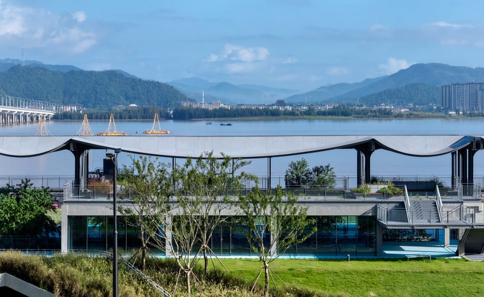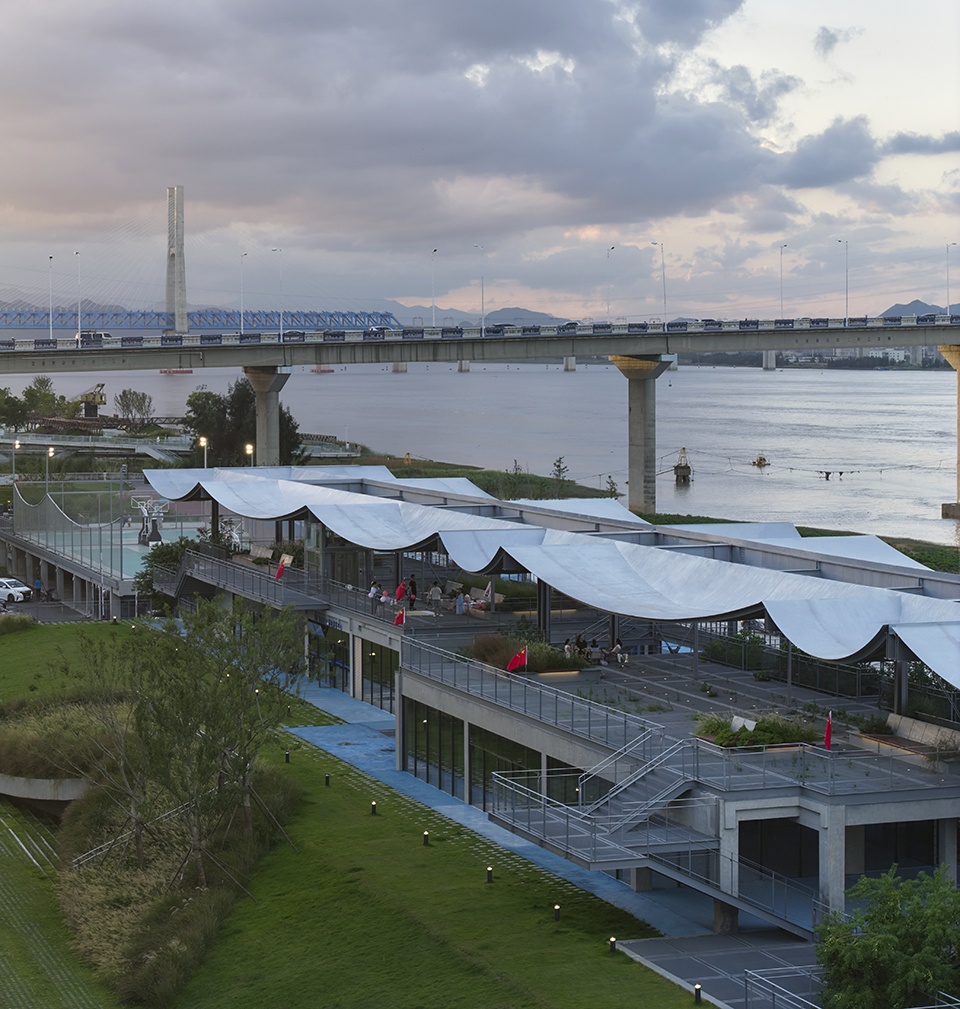 The design draws on and reinterprets the cultural heritage of fishing communities. The undulating roof is inspired by the everyday sight of fishing nets drying along the Jiaojiang riverbank. The green slope on the south side takes the form of a fishing shuttle and seamlessly integrates the garage entrance. The connecting steps on the northern side and the eastern court fence mirror the ripples on the river’s surface, blending with the main structure to create a relaxed and light-hearted atmosphere.