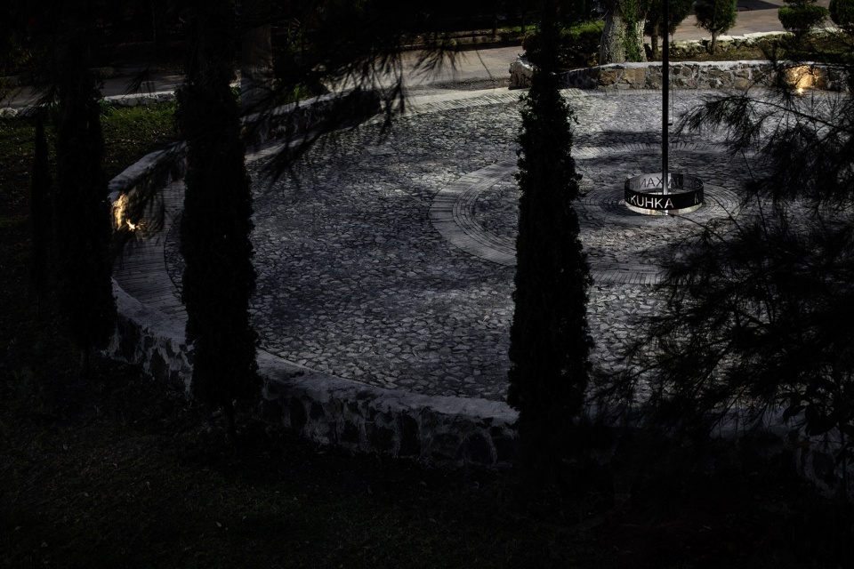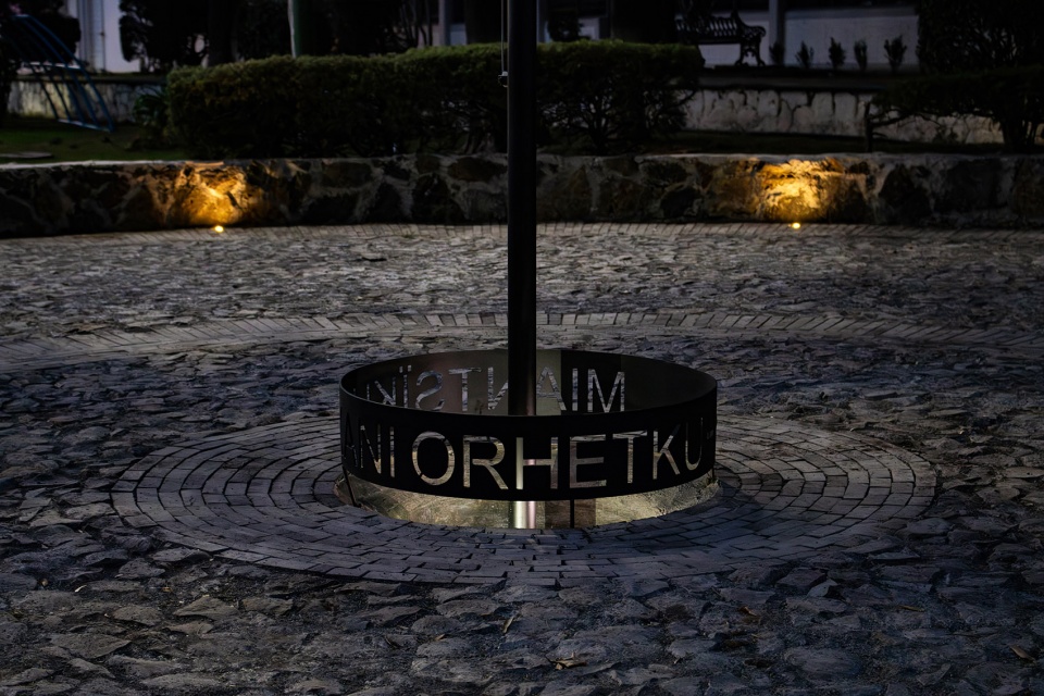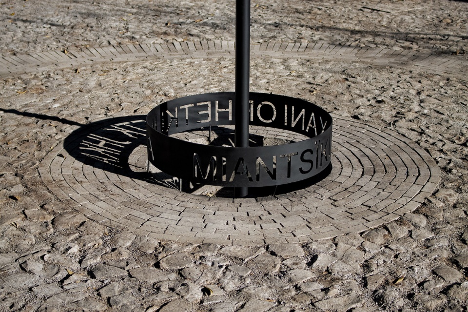 三条同心圆在地面上绘制,如同时间的涟漪,引导着路径通向中心:一个钢制环形物,刻有普雷佩查文字:“最原始的记忆”(Miantsïkua xani orhetkuhka)。这一动作体现了这样的理念:所有的学习,就像每一根根茎,始于共同的起源。