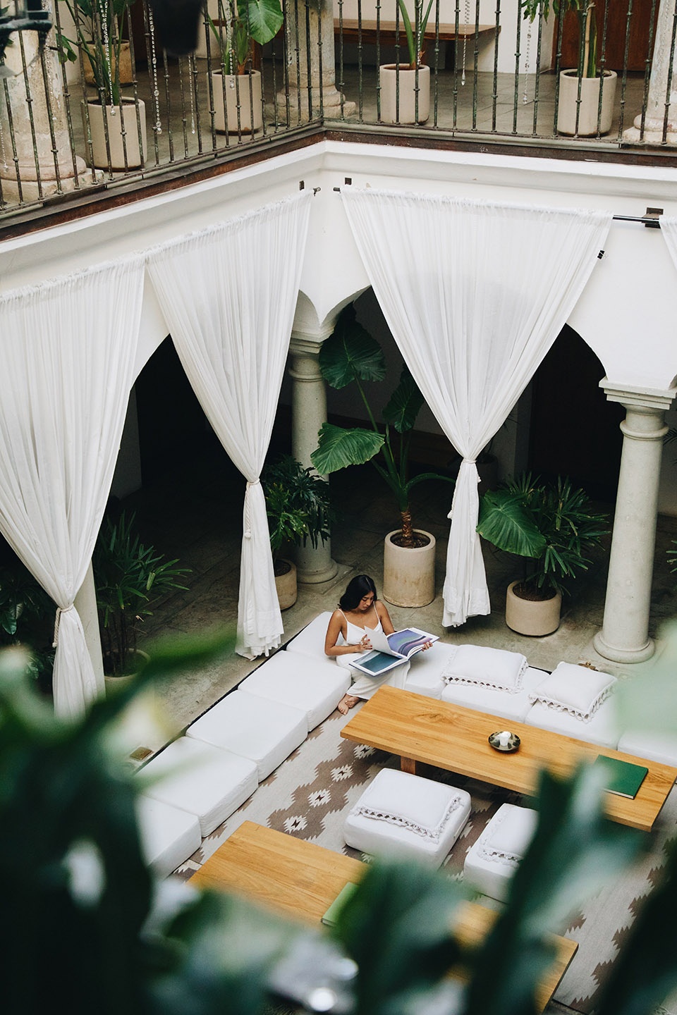 overlooking the courtyard from the upper level