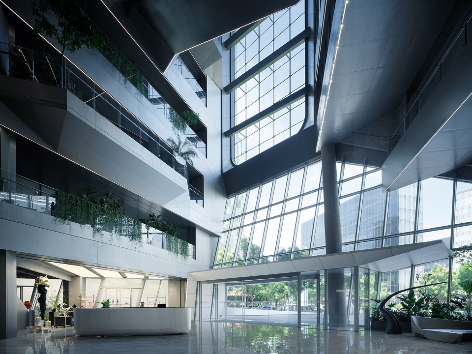 In elevator halls and other key streamline nodes, the design strengthens the sense of entry ceremony: Parametric light film ceiling: The top adopts parametric design language for the light film ceiling, matched with stainless steel walls. The mirror material produces multiple refractions and diffusions of light, creating a light and shadow effect with spacetime penetration (Spacetime Penetration), heralding that an efficient and innovative future space is about to unfold.