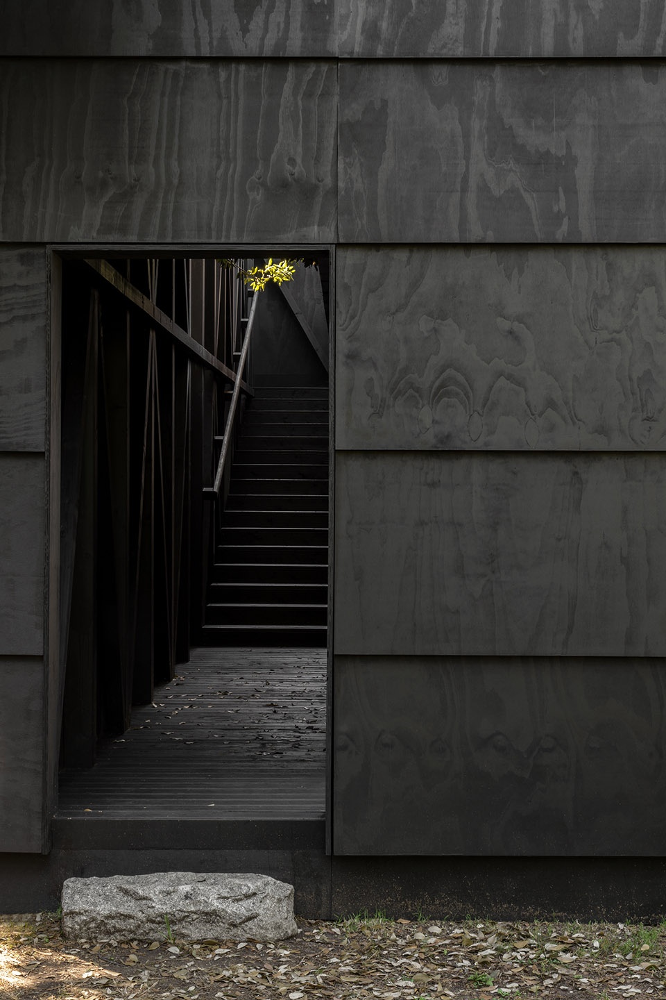 ▼围合体完全由深色松木制成,