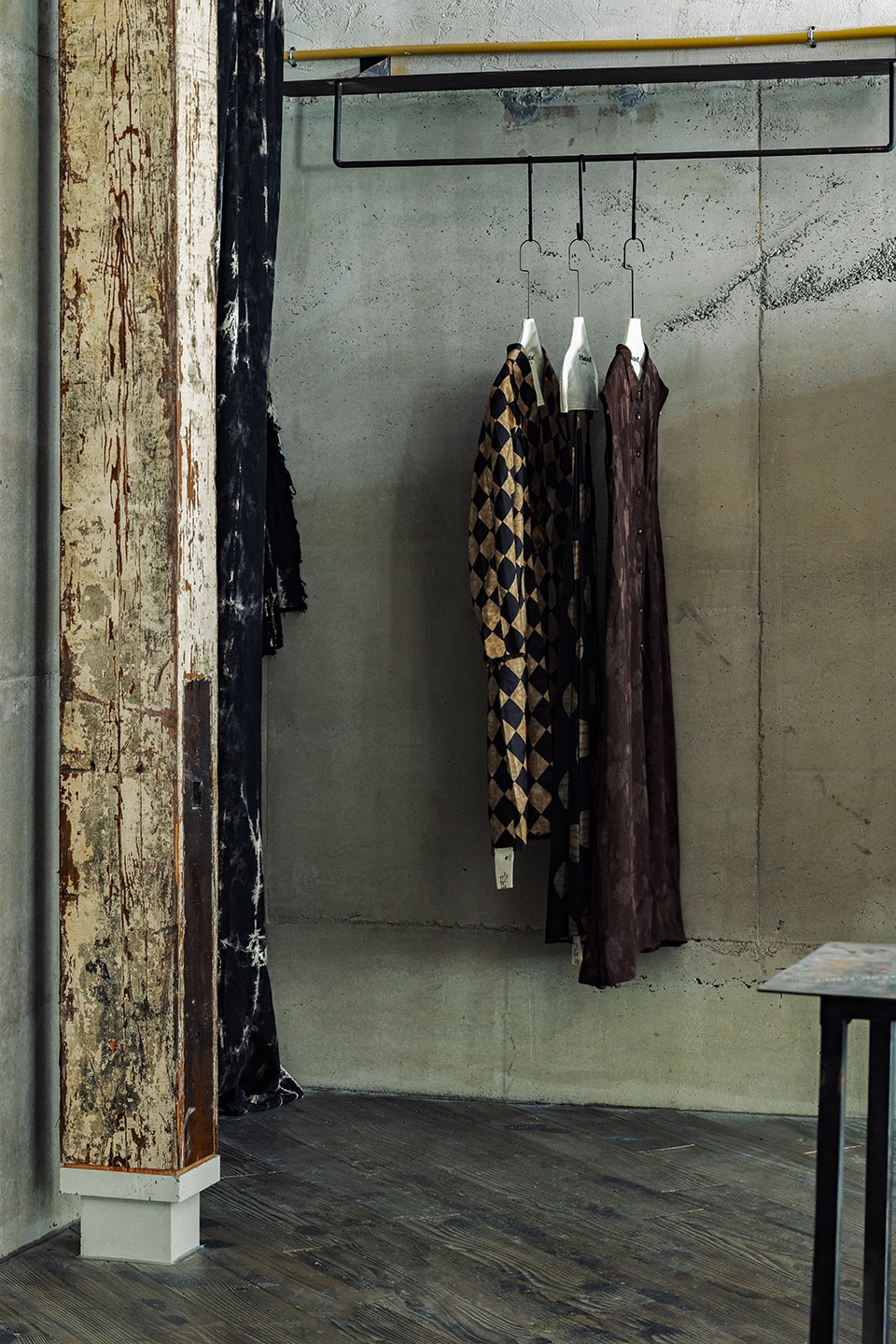 与服装最为亲近的原始感金属挂衣杆,则以其粗粝锻打真实的质感,谦逊地衬托着每一件服装设计的精致。它们共同构筑了一个充满主理人意志的场域,邀您用触摸、用目光、用停留,去细细品读每一处被精心雕琢的细节与情感。