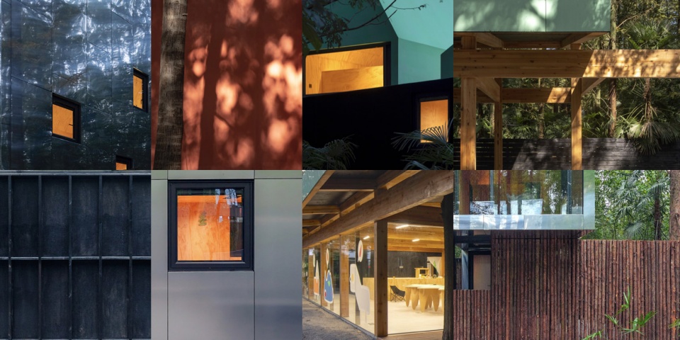 建筑的整体采用胶合木结构,通过数字化技术对每一根异形构件和节点进行设计定制,实现了百分之百的全装配建造。关于居住,一定没有标准答案,每个人都希望居所能够传达自身对于生活的理解。个个世界延续了一直以来的自然建造理念,我们保留场地内的每一棵树和竹子,延续了原有林地和小径肌理,房子完全架空于地面,全部的建筑均为自主研发的装配式木结构,由团队和用户一起建造完成。