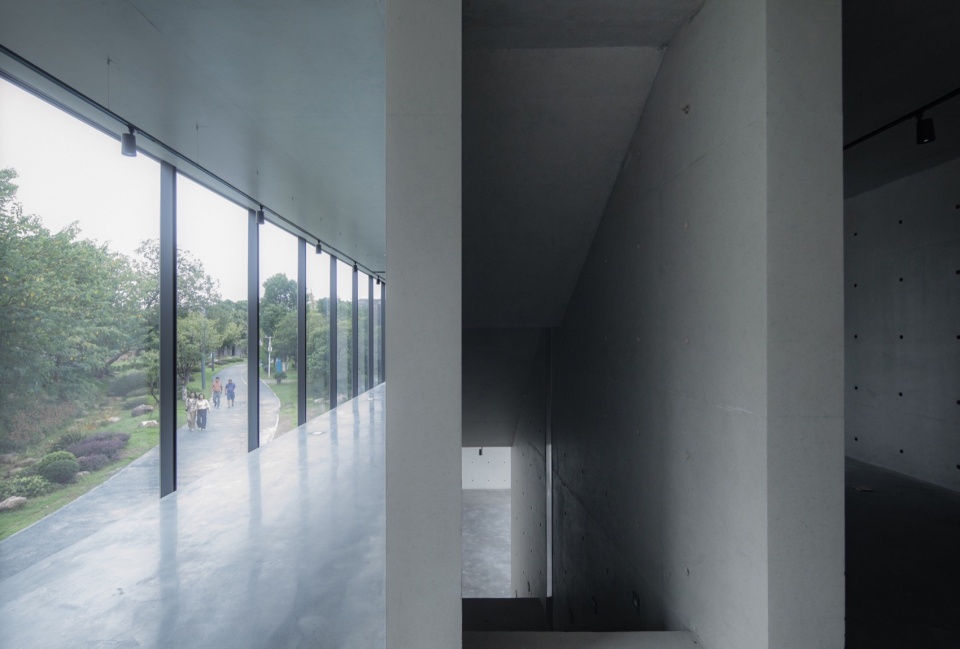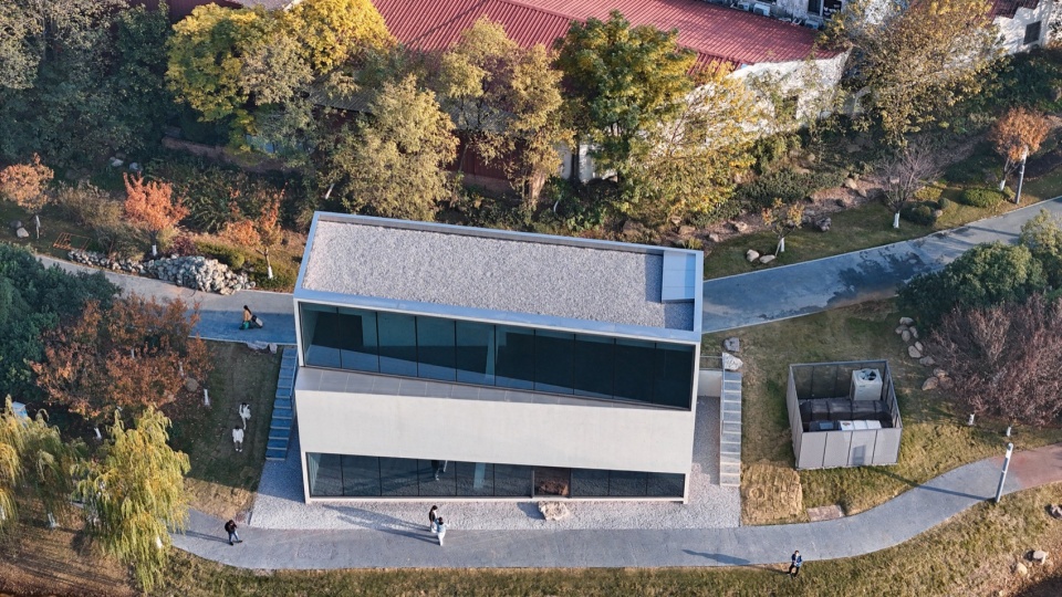 凭借严谨的逻辑控制,建筑在自然与人工环境的叠加中,并未选择模仿自然,而是以理性之光与自然韧性交相辉映。镜像旨在成为自然中的一面镜子,映射周边水、树、山三重景观维度。建筑与其水中倒影亦构成镜像关系,隐喻人工与自然环境的叠合与互映。
