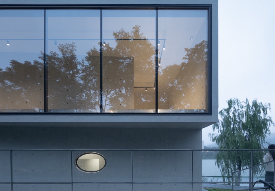 Through strict logical control, the building, within the overlay of natural and artificial environments, does not imitate nature but allows the light of rationality to resonate with natural resilience. Jing Xiang aims to act as a mirror within nature, reflecting the three landscape dimensions of water, trees, and mountains. The building and its reflection in the water also form a mirror relationship, metaphorically representing the overlay and mutual reflection of the artificial and natural environments.