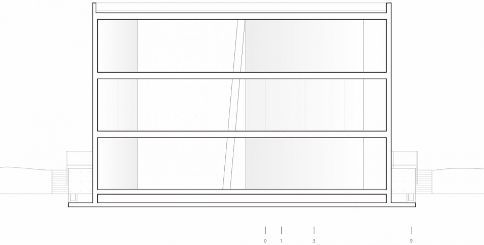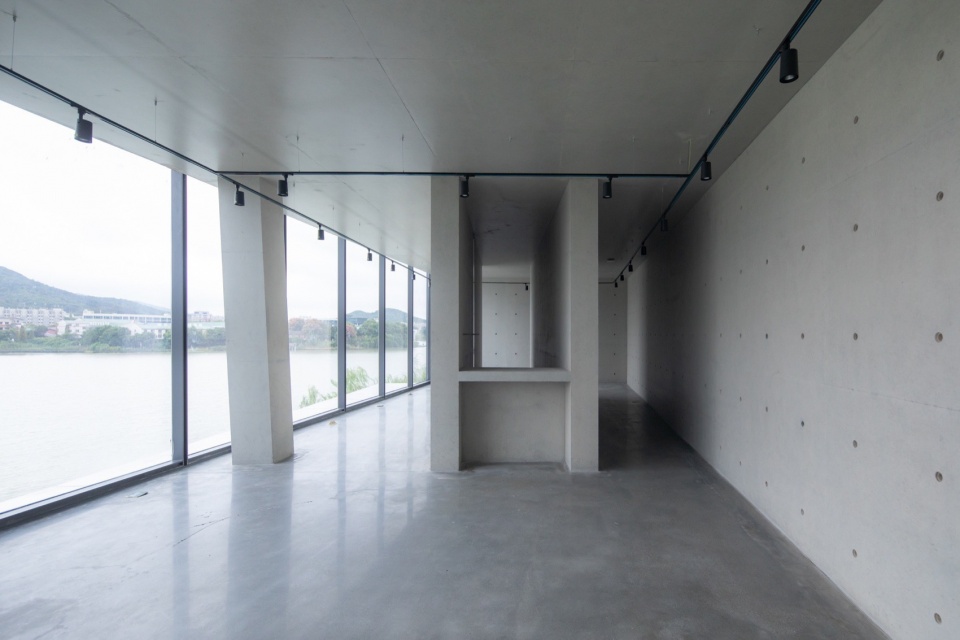 在景观层面,该区域视野开阔,缺乏视觉屏障。为呼应景观的多维性,建筑一层向水面敞开,二层体量可观察到后方步道上的人流活动,形成若即若离的对话关联,三层则提供眺望岳麓山与湖面的远眺视野。由于建筑形态狭窄,设计有意强化了这种极端的景观体验。
