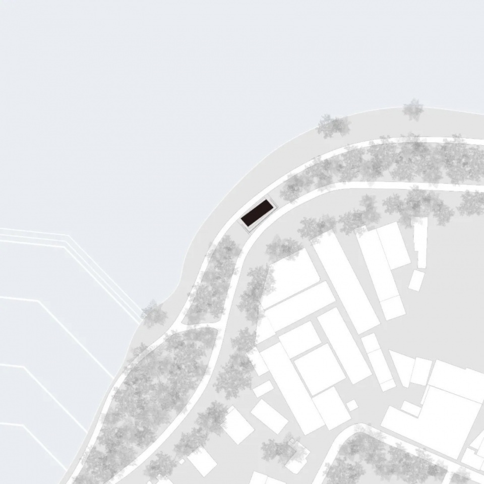 As a small-scale building by the lake, the design avoids mimicking nature, instead employing a rational, artificial geometric form to create a contrasting dialogue with the natural environment. This architectonic volume, with its clear geometric guidance, intervenes in the natural revetment and even the path system, demonstrating how rational construction and natural principles can converge through different paths.