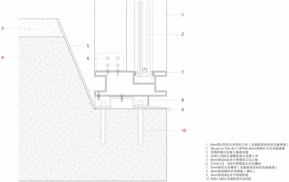 ▼幕墙底部,Curtain wall bottom