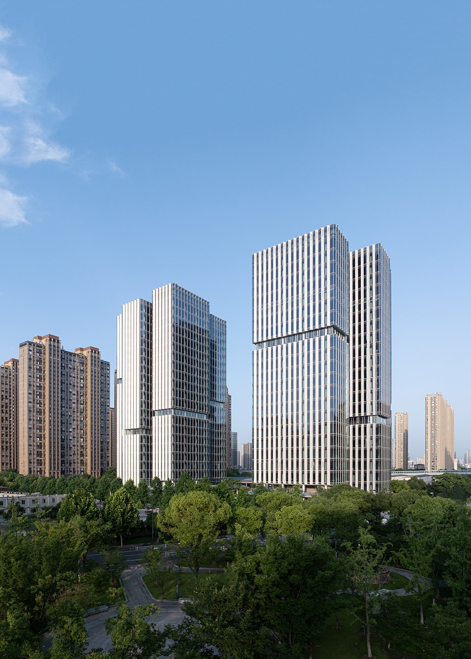 The project is divided into three phases, with gad undertaking the overall planning and individual building design. In the completed Phase I project, gad participated as the lead EPC contractor and design lead. With a total construction area of approximately 102,000 ㎡, Phase I consists of two 22-story above-ground office towers (with 2 basement floors including partial mezzanines) and reaches a height of about 100 meters. As the first batch of projects to be implemented in the park, the design not only needs to maintain the independence and integrity of the project’s design and construction but also reserve space for the interconnection, integration, and “growth” of Phases II and III of the park.