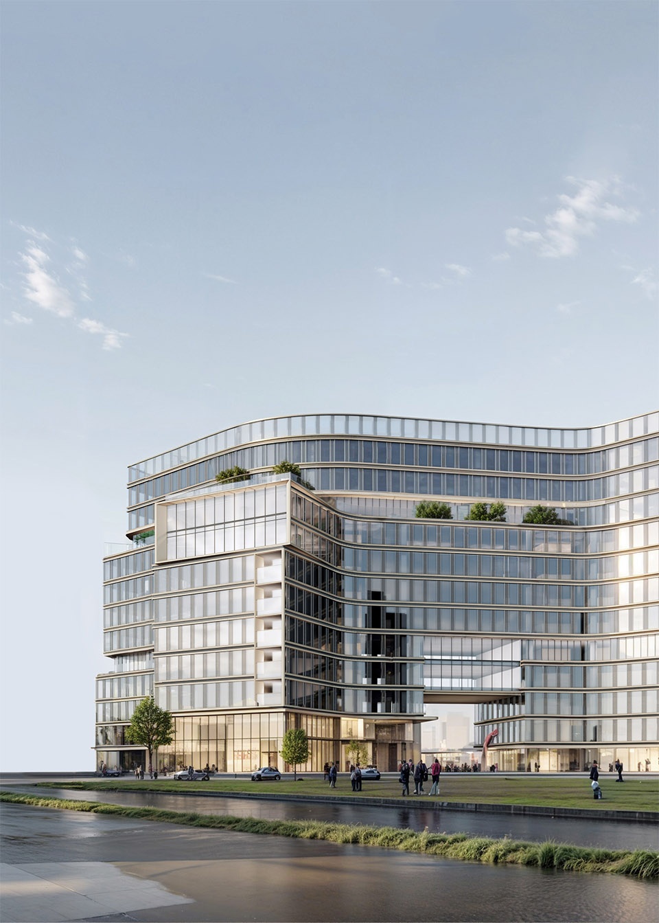 项目共分三期,gad对项目进行总体规划及单体设计。已竣工的一期项目中,gad作为EPC总承包牵头单位及设计主导方参与其中。一期项目总建筑面积约10.2W㎡,由两栋地上22层、地下2层(含局部夹层),高度约100m的办公塔楼组成。作为园区首批落地项目,设计不仅需要保持项目设计与施工的独立性与完整性,也要为园区二、三期的建设留下互通、交织、生长的空间。