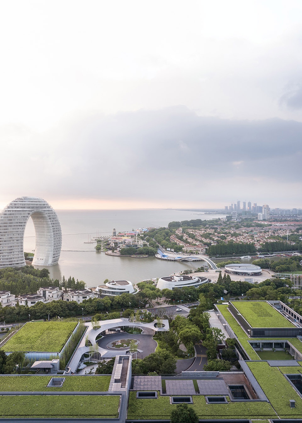 ▼左:梅山小筑改造/南太湖山庄会议中心二期(2020)右:凤栖江河商务中心效果图(2022),Meishan Xiaozhu Renovation/Phase II of Nan Taihu Mountain Villa Conference Center(left),Renderings of Fengqi Jianghe Business Center(right)