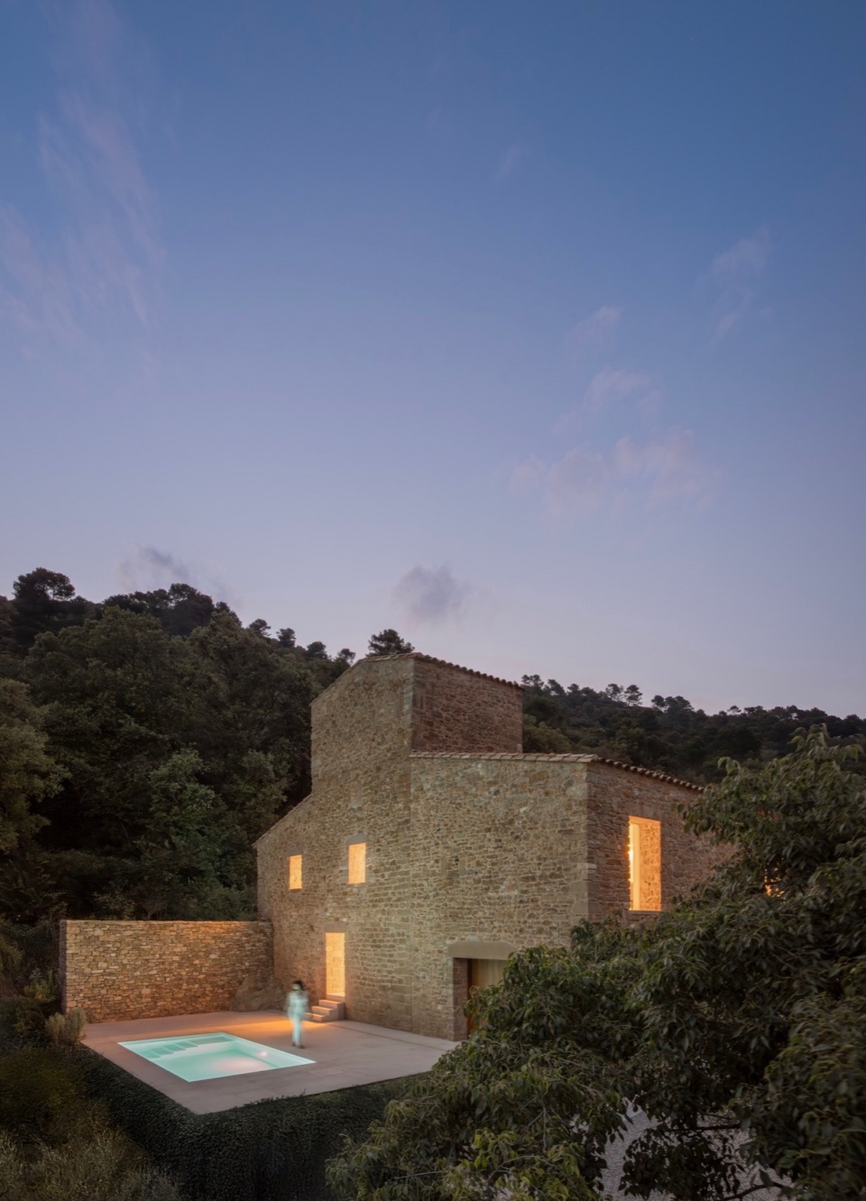 通过对传统的再诠释,原有的体量与类型学得以保留,仅转化最为关键的部分。设计尊重了原有空间的尺度,并将每个空间对应到新的功能之中。新的居住者离开伦敦的生活,在赫罗纳开启新篇章——被树林、宁静与光线所环绕。或许,这个项目也很好地诠释了一个始于20世纪90年代的理念:在任何地方工作皆有可能。他们在伦敦开展的职业活动如今依旧如常,只不过转移到了一个非凡的自然环境中。