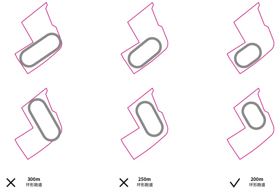 ▼跑道布置方案类比,Compare of running track design options