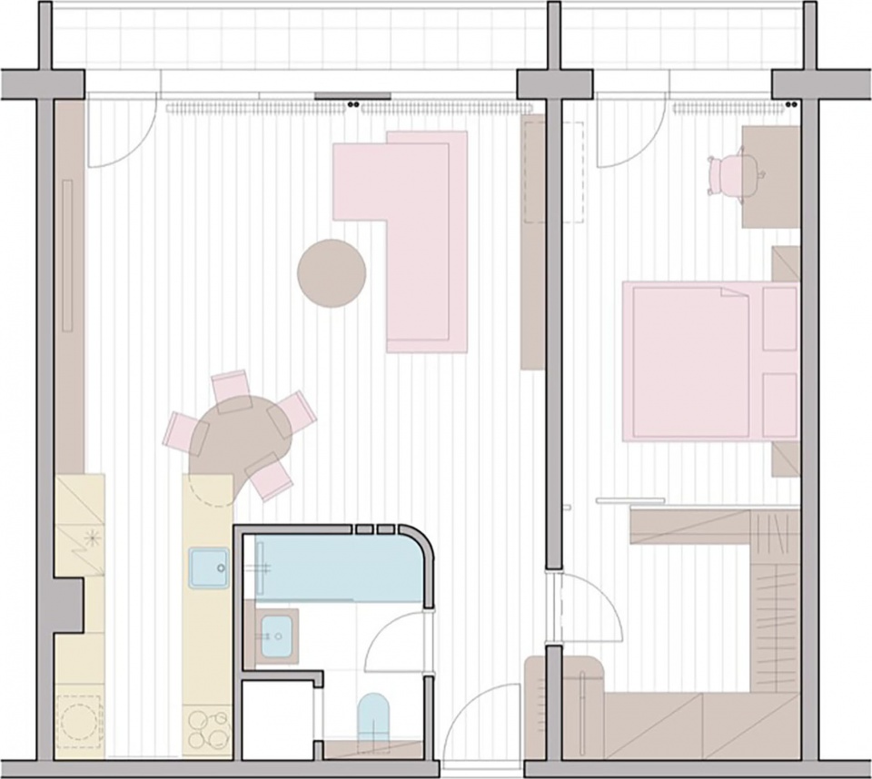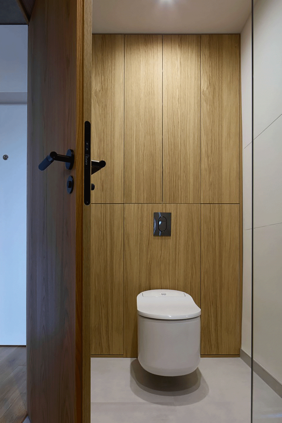 公寓配备了现代化的智能家居系统与安防功能,提升了舒适度与安全性。隐私通过室内外百叶窗得以保障,而将原有塑料窗替换为高品质的木铝复合三层玻璃窗后,城市噪音得到了显著降低。最终呈现的是一个宁静安逸的空间,即便位于板式建筑之中,也依然令人倍感舒适。