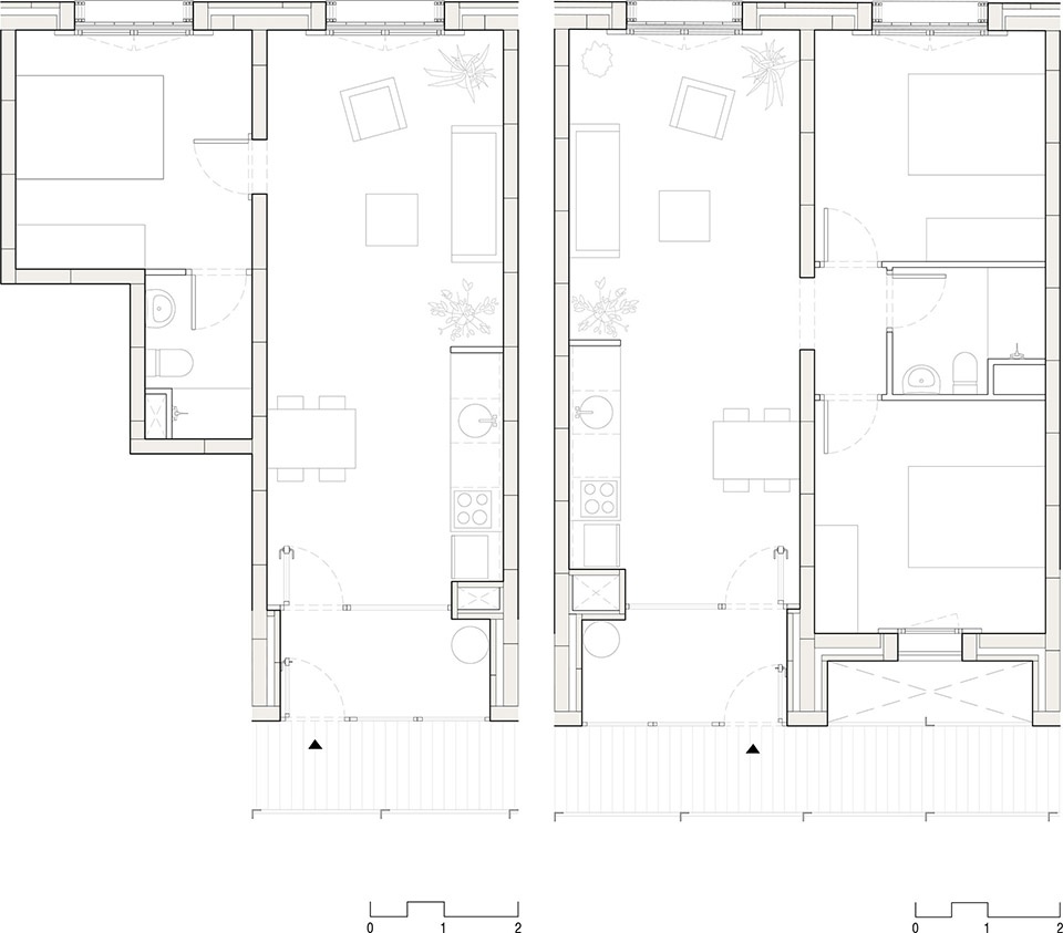 ▼住房单元平面A(左)&平面B(右),Dwelling unit A(Left) & B(right) plans