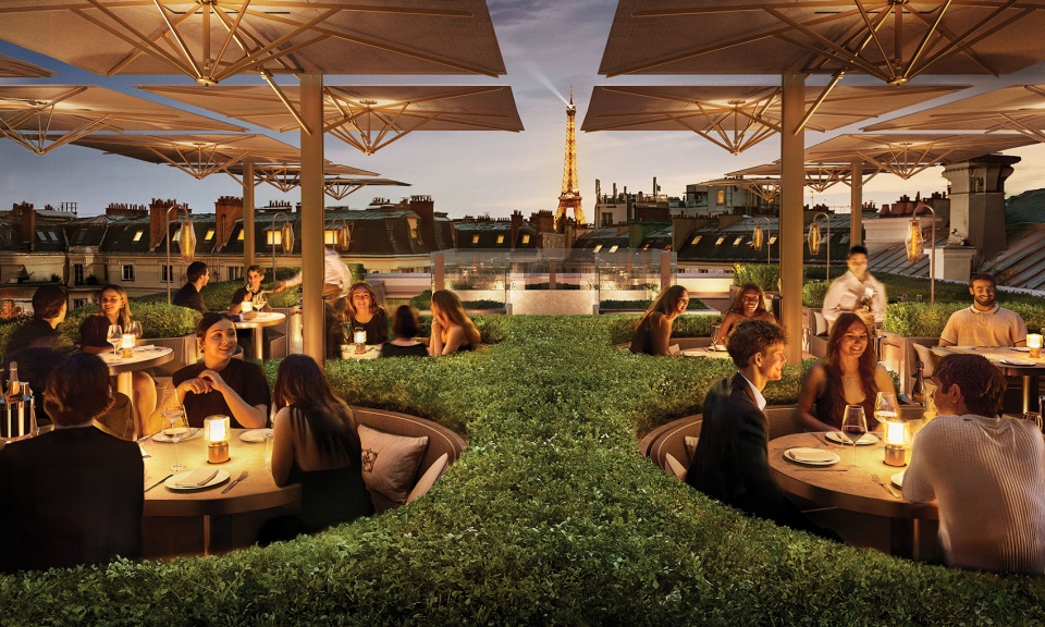 ▼上层屋顶的香槟酒吧可俯瞰整座城市与埃菲尔铁塔全景,