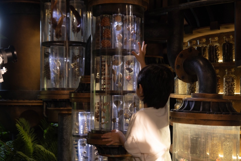 The L1 entrance of the Wonder Tree appears from the outside as a great tree hollow gateway, where metallic machinery and entwined roots merge organically. Upon entering, the interior space of the L1 is designed as the energy core of the Wonder Tree. To sustain Earth’s ecology, the Wonder Tree collects and stores countless plant seeds, using its own sap energy to create a long-term preservation environment for them. Bringing this narrative to life, THE RING · GARDEN CITY has partnered offline with Chongqing Natural History Museum. Over six months, expeditions were made to Heilongjiang, Ningxia, the Greater Khingan Range, and Xishuangbanna, collecting hundreds of rare seed species. Through interactive displays, visitors are allowed to closely observe and learn about these precious life-forms.