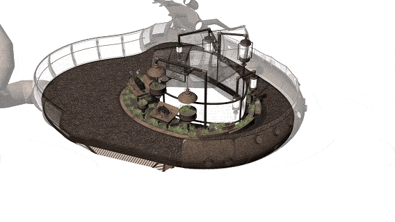 2022年初,喜随设计受邀介入,与纬图共创接力主体装置的深度设计与实现,其工作涵盖了从世界树整体装置造型重新推敲、蒸汽时代历史资料研究、自然探索系统(“地球净化计划”与“基因存储计划”)设计,树木分枝生长逻辑及结构力学体系研究,融入参与功能的机械动物形象设计,水电灯光植物等树上各专业配合,搭建用于精细化指导施工的全息模型,各种细部功能设备、安全说明标识等等的隐藏式设计,以及世界树整体施工图纸的绘制等过程。