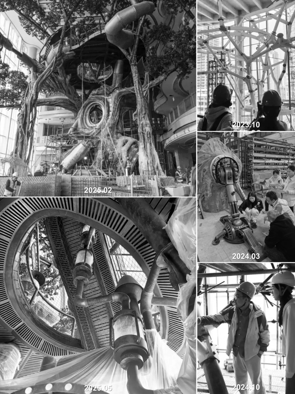 The mechanical creatures on the Wonder Tree are another key component of the spatial narrative. From early conceptual design to iterative refinement of character designs, infusing them with practical functions, designers have drafted and revised countless sketches and models. The later stages of detailing and fabrication were handled by a specialized mechanical sculpture fabrication team, who further added more mechanical characters, elevating the fantastical and interactive effects of the scene to new heights.