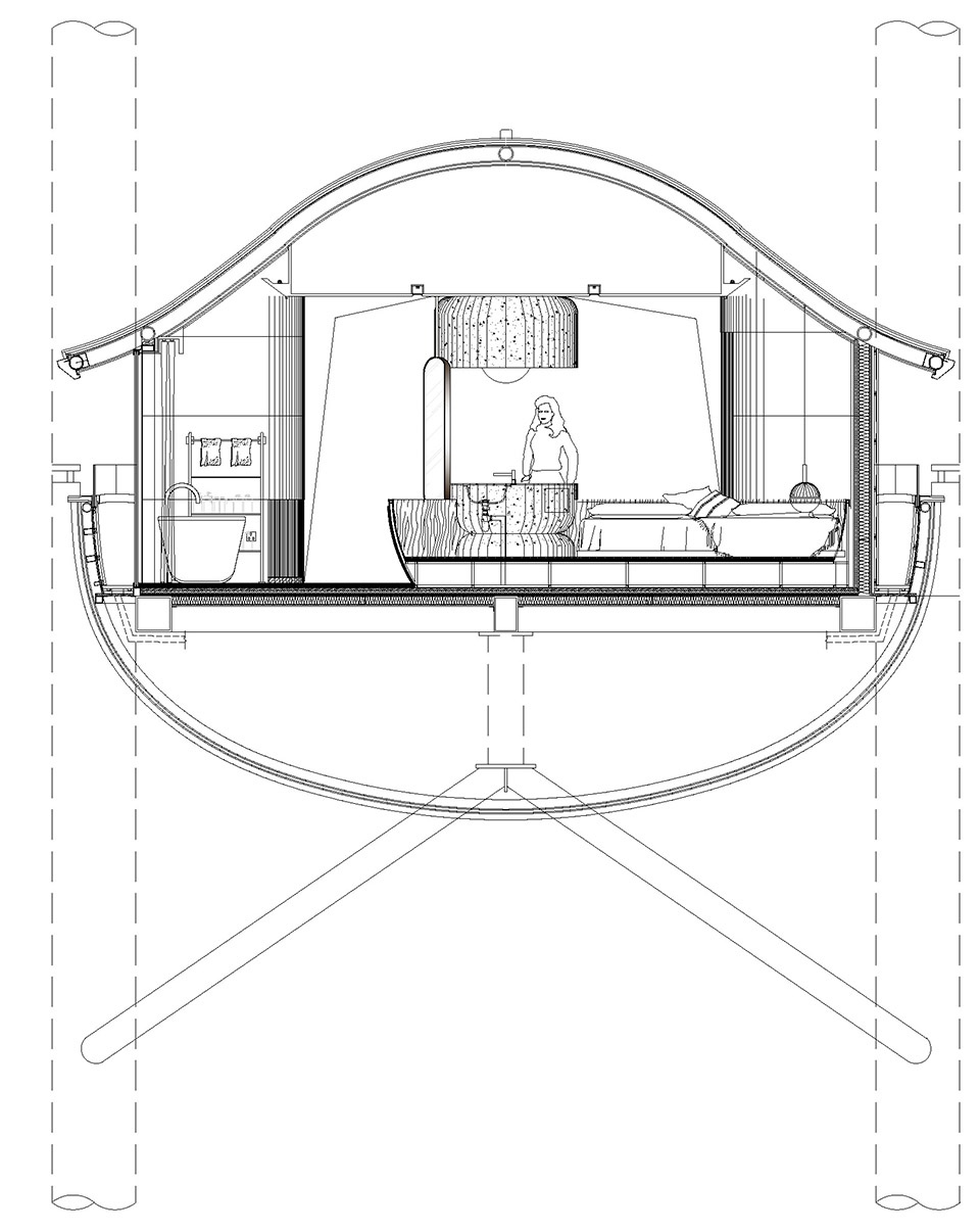Integration of Panoramic Views and Micro-Immersive Experiences. In crafting the spatial experience, “Forest Nests” emphasizes the duality of “immersion” and “distant viewing,” creating a sense of nesting high in the air with boundless views. The 270-degree panoramic floor-to-ceiling window serves as the primary interface of the building, maximally drawing the unparalleled forest, coastal views, and sunlight into the interior, blurring the physical boundary between the comfortable internal space and the external natural scenery. All core functional pipelines are cleverly concealed within the structure, ensuring the purity and integrity of the exterior form. Inside, smart systems and seamless networks work together to create a highly convenient, comfortable, and safe modern micro-immersive dwelling unit within the vibrant, natural surroundings.