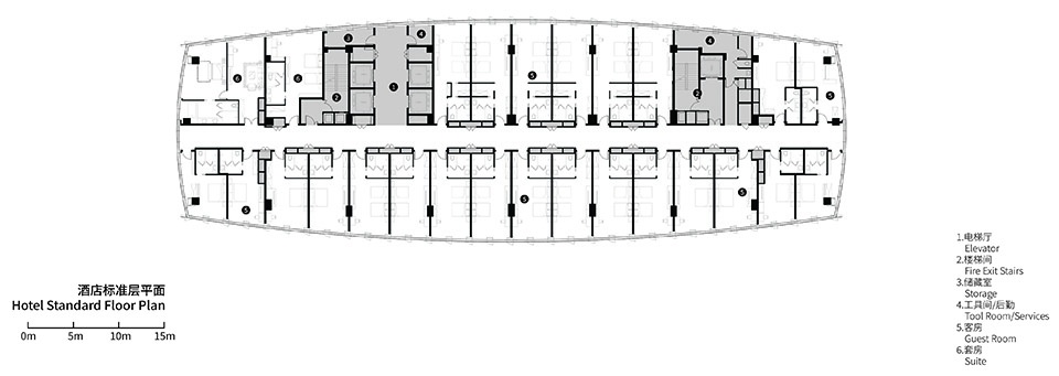 ▼酒店标准层平面,hotel standard floor plan