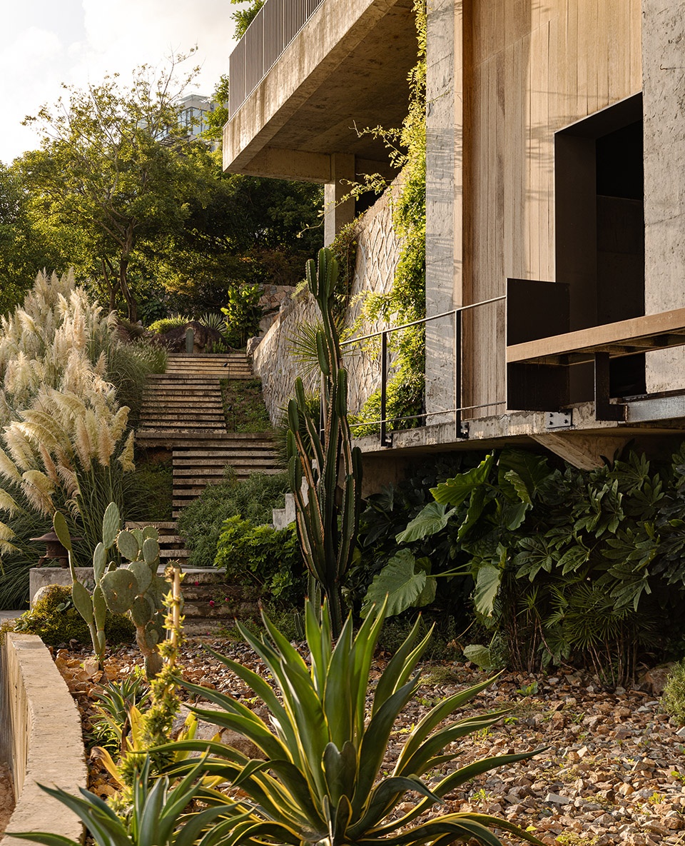 这个家最大的特质,是她与自然的关系。我们没有刻意去打造一个“观赏花园”,而是让建筑轻轻穿插进自然之中,像是一次真诚的握手。巨石堆砌在鱼池边,野草在石缝间自由生长,白鹭偶尔掠过湖面,青蛙在鱼池边安家——这些看似不被设计过的花园景观,更像是与自然的一次真切交谈。我常常在清晨或黄昏时站在花园中,与城市不同,这里很安静,什么也不做,只是发呆。这些时刻让我重新理解什么是“松弛”。不是故作的,而是一种内在的从容,是身体与精神都能安放于此的状态。