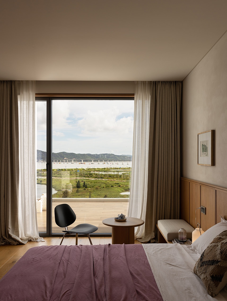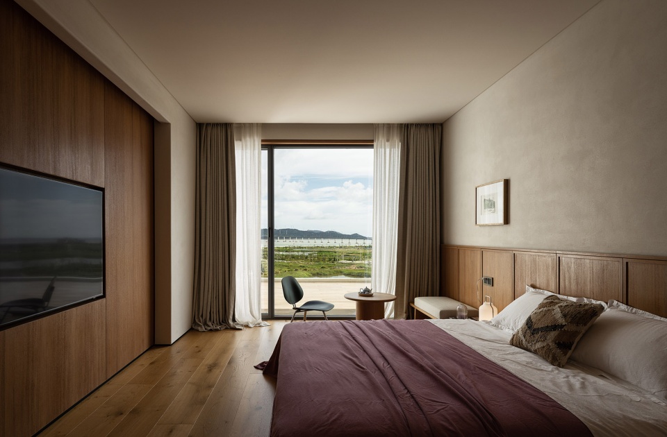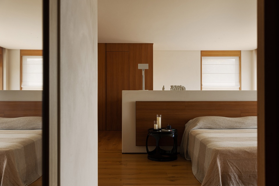 考虑到度假所需的私密性与松弛感,我们只设置了三个卧室,偶尔接待一些亲密的家人和朋友。每一个房间都宽敞且独立,既不拥挤,也不显得冷清,完全为我们自己的休息与沉淀所服务。