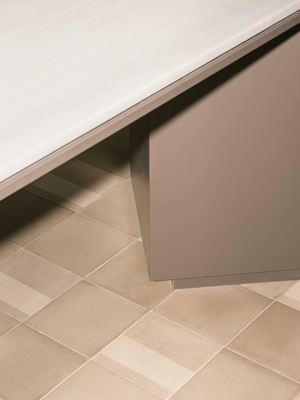 与恢复与再利用的理念相一致,原始水泥花砖得以保留。原本略显俗气的几何图案被拆解并重新组合成更抽象且现代的几何形式。这种策略保留了材料的记忆,同时赋予了其更新的统一表达。所有窗户均采用高效玻璃,外立面与庭院立面都进行了热隔离处理,以降低公寓的能耗需求。