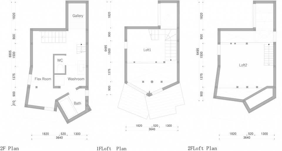 ▼2F平面、1F loft 平面、2F loft 平面,2F Plan、1F loft Plan、2F loft Plan